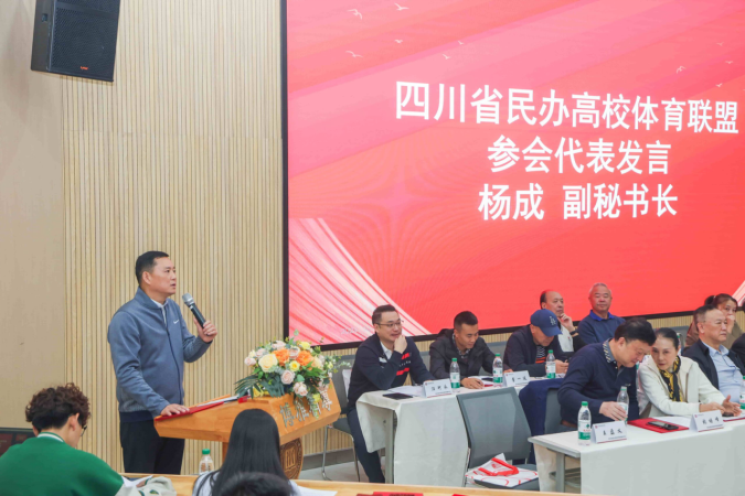 原四川省教育厅体卫处处长苗建平在会上发表讲话。他强调了高校体育在提升学生综合素质、促进校园体育文化建设等方面的重要作用,并对四川省民办高校体育联盟的成立表示祝贺。苗建平处长希望联盟能够发挥积极作用,推动四川省高校体育事业的蓬勃发展。