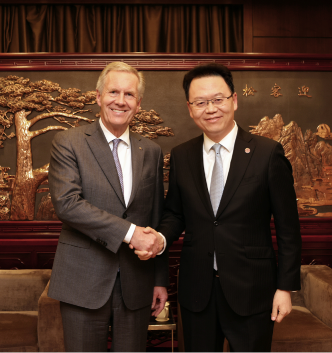 席间,姜波理事长与武尔夫亲切会谈,他介绍了学校的历史与发展规划,也阐释了“民间”国际交流的重要性,得到了武尔夫先生的高度认可。