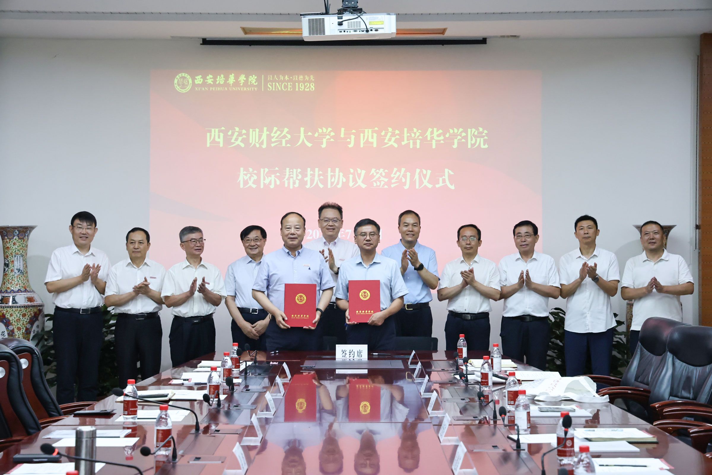 西安财经大学副校长史卫民、西安培华学院副校长罗新远代表双方签署了《西安财经大学与西安培华学院校际帮扶协议》《联合培养硕士研究生协议》。