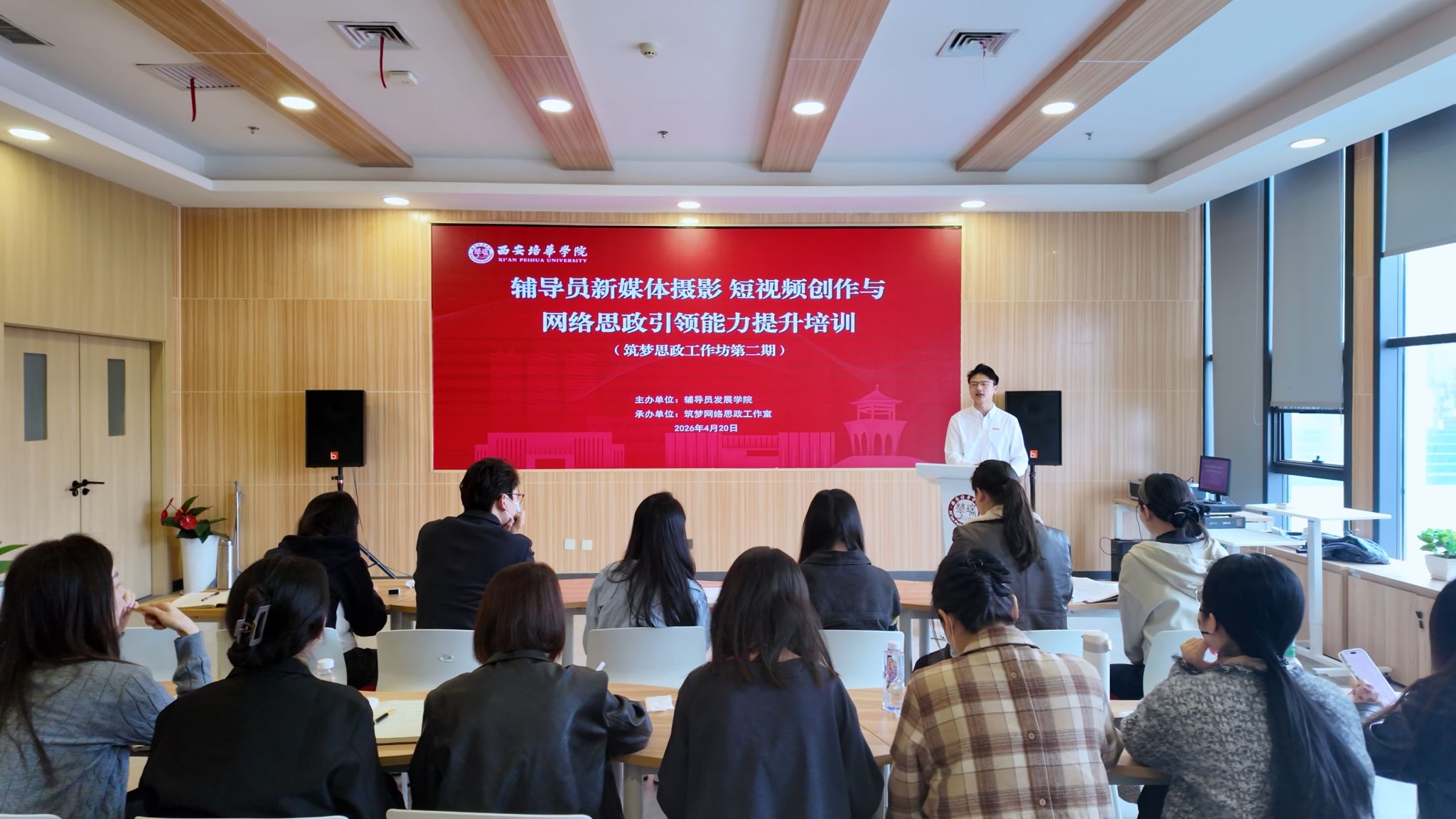 为进一步提升辅导员新媒体宣传素养与网络思政工作能力,突出实操实效,4月20日上午,由我校辅导员发展学院主办、筑梦网络思政工作室承办的 “辅导员新媒体摄影与短视频创作及网络思政引领能力提升” 在恒友楼团体辅导室顺利举办。本次培训特邀校团委科技创新部部长陈天航老师担任主讲嘉宾,各学院30余名辅导员代表参加活动。
