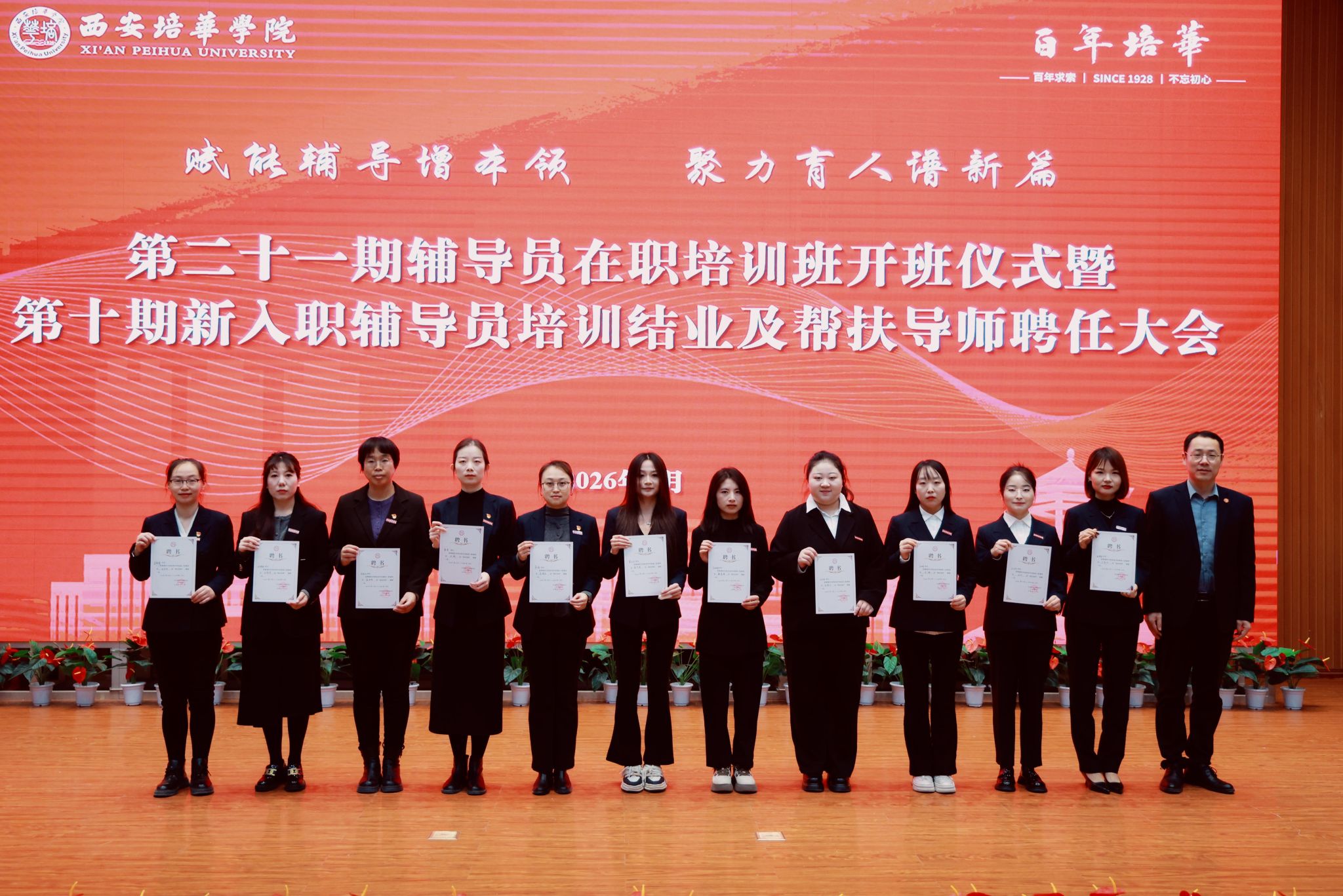 为深入贯彻《中国共产党思想政治工作条例》《新时代陕西高校思想政治辅导员队伍建设提质增效十条措施》等文件精神,聚焦辅导员专业发展核心需求,全面提升队伍理论素养与业务能力,充分发挥骨干辅导员“传、帮、带”示范引领作用,1月12日上午,西安培华学院第21期辅导员在职培训班开班仪式暨新入职辅导员培训结业及帮扶导师聘任大会在维之图书馆报告厅隆重举行。校党委副书记蔡亮,党委学工部部长权勇太、副部长杨媛,校团委书记董莹,各二级学院党委(党总支)书记、副书记及全体辅导员齐聚现场,共赴这场盛会。大会由学工部副部长杨媛主持。