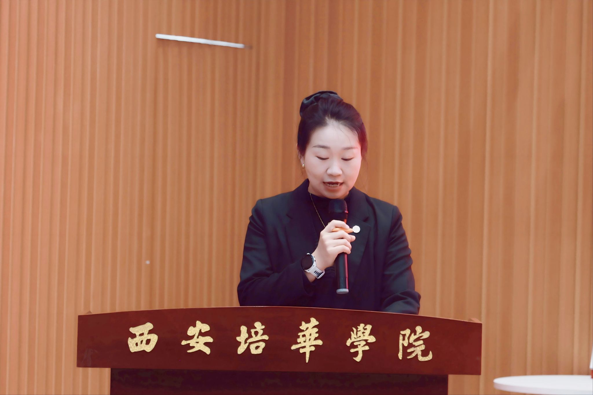校团委书记董莹宣读《关于聘任吴晓青等同志为新入职辅导员帮扶导师的通知》与《关于组织开展西安培华学院第二十一期辅导员在职培训的通知》,明确帮扶机制与培训规划。