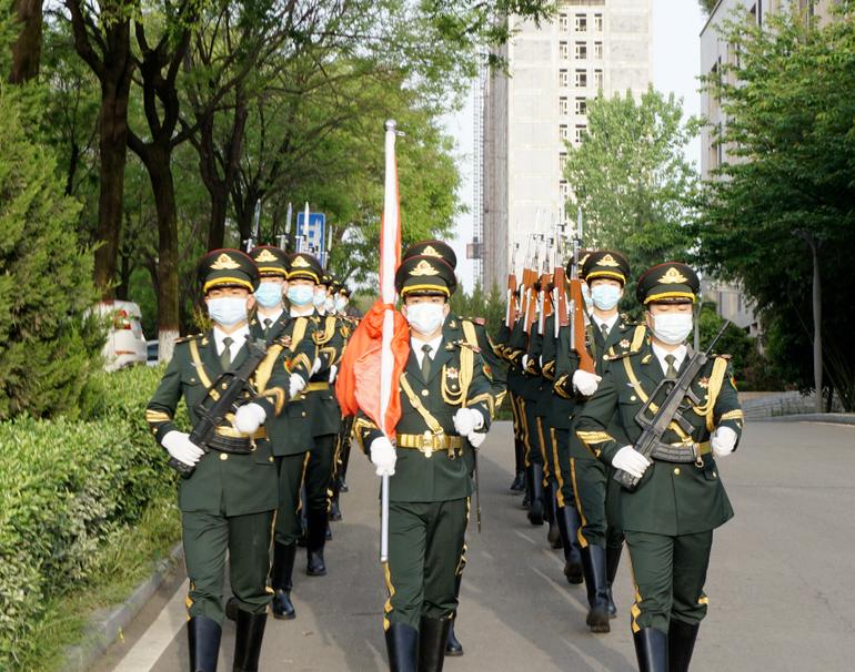 伴随着庄严的国歌声