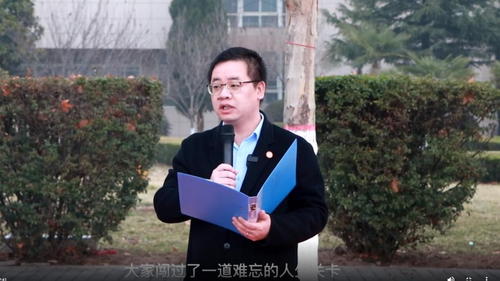 第二句:大家要细致审视“疫三年”的经历,做那“追光者”。疫情三年,线上学习是对我们毅力、恒心和信念一次重要考验,有人躲在了摄像头后面享受着所谓的“无人看守的自由与惬意”,有人钻进了知识的海洋追寻着人生真正的自在。三年的时间足够让大家之间的差距越拉越大,也足够让我们今后的人生发生巨大的变化,我们决不能再做随波者,信息时代,不进则退;我们要努力撑竿自划,拾遗补缺,坚定地驶向更深远的目标,用奋斗让青春染上绚丽色彩,做新时代的“追光者”。