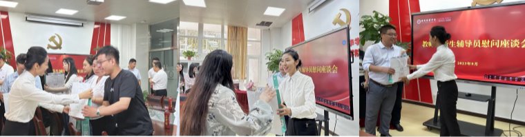9月8日上午,在第39个教师节到来之际,学校党委副书记、副校长姚文静走访慰问2023级新生辅导员们,向他们致以诚挚的问候和节日的祝福。慰问期间,姚校长为辅导员老师们送上鲜花和亲笔签名贺卡并亲切交谈,感谢他们在新生报到及军训期间的辛勤付出,希望他们做好新生健康成长的指导者和引路人。