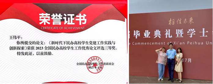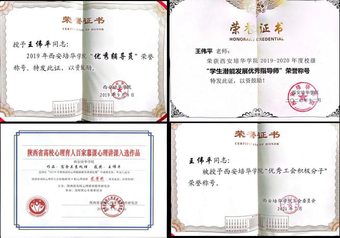 王伟平,男,中共党员,讲师,国家三级心理咨询师。现任智能科学与信息工程学院党总支副书记,兼任大学生心理健康教育课程教师。 曾被评为陕西省高等学校优秀共产党员、获得全国百佳心理委员优秀指导老师、 个人作品《宿舍关系的处理》入选为陕西高校心理育人百家微课心理讲课二等奖、指导的学生团队在陕西省大中专学生志愿者暑期文化科技卫生“三下乡”社会实践活动中被评为“省级优秀团队”、第六届陕西省优秀辅导员、提交的论文荣获得2023全国民办高校学生工作优秀论文评选三等奖 。
