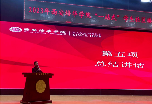 党委学工部副部长姚斌讲到,“一站式”学生社区综合管理模式建设是深入学习贯彻习近平总书记关于教育的重要论述,西安培华学院紧紧围绕立德树人根本任务,坚持以学生为中心,大力推进学院制下“一站式”学生社区管理模式改革,创新工作机制和路径,探索构建党建引领、队伍入驻、文化沁润、学生主体、安全筑基、条件保障“六位一体”育人管理教育模式,将“一站式”学生社区建设作为学校深化“三全育人”前沿阵地,努力培养青年成为堪当民族复兴重任的时代新人。