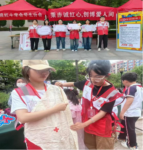 (宿舍成员任佳丽,李亚茹在神州五路社区参加对创伤,包扎进行讲解)