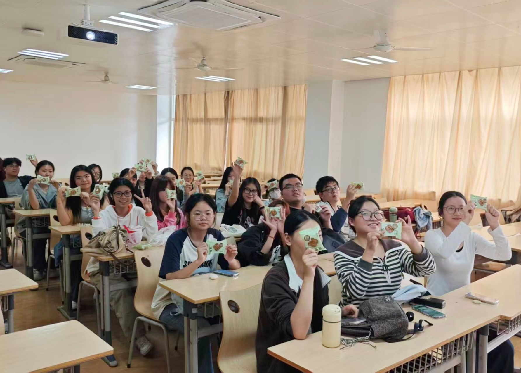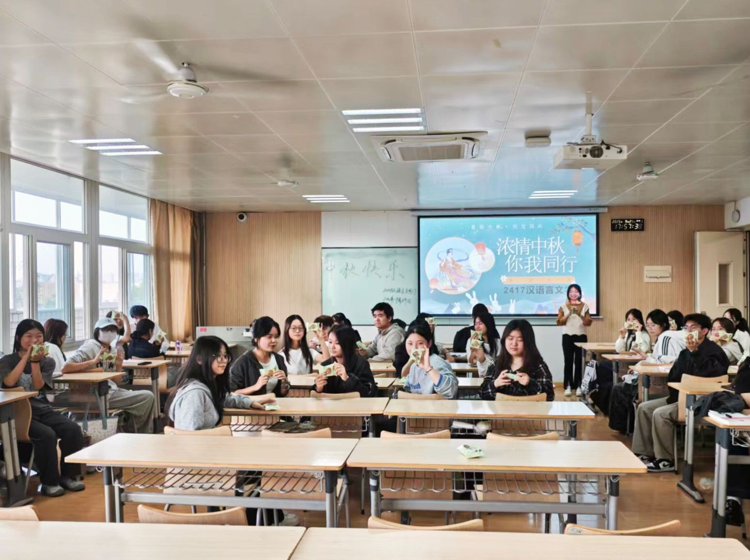 △国际校长李华为同学们发放月饼