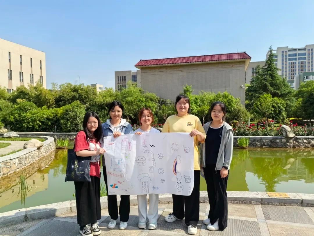 王老师分享了五种日常的减压方法。然后带领团体成员走出户外,进行“五感”减压体验引导同学们调动身体的五种感官:视觉、听觉、嗅觉、味觉、触觉去发觉身边的美,体验美好事物带来的愉悦,舒缓压力、放松心情。通过“五感”体验提醒同学们要主动的将生活中的“美”与自己相连接,增强自我价值感。