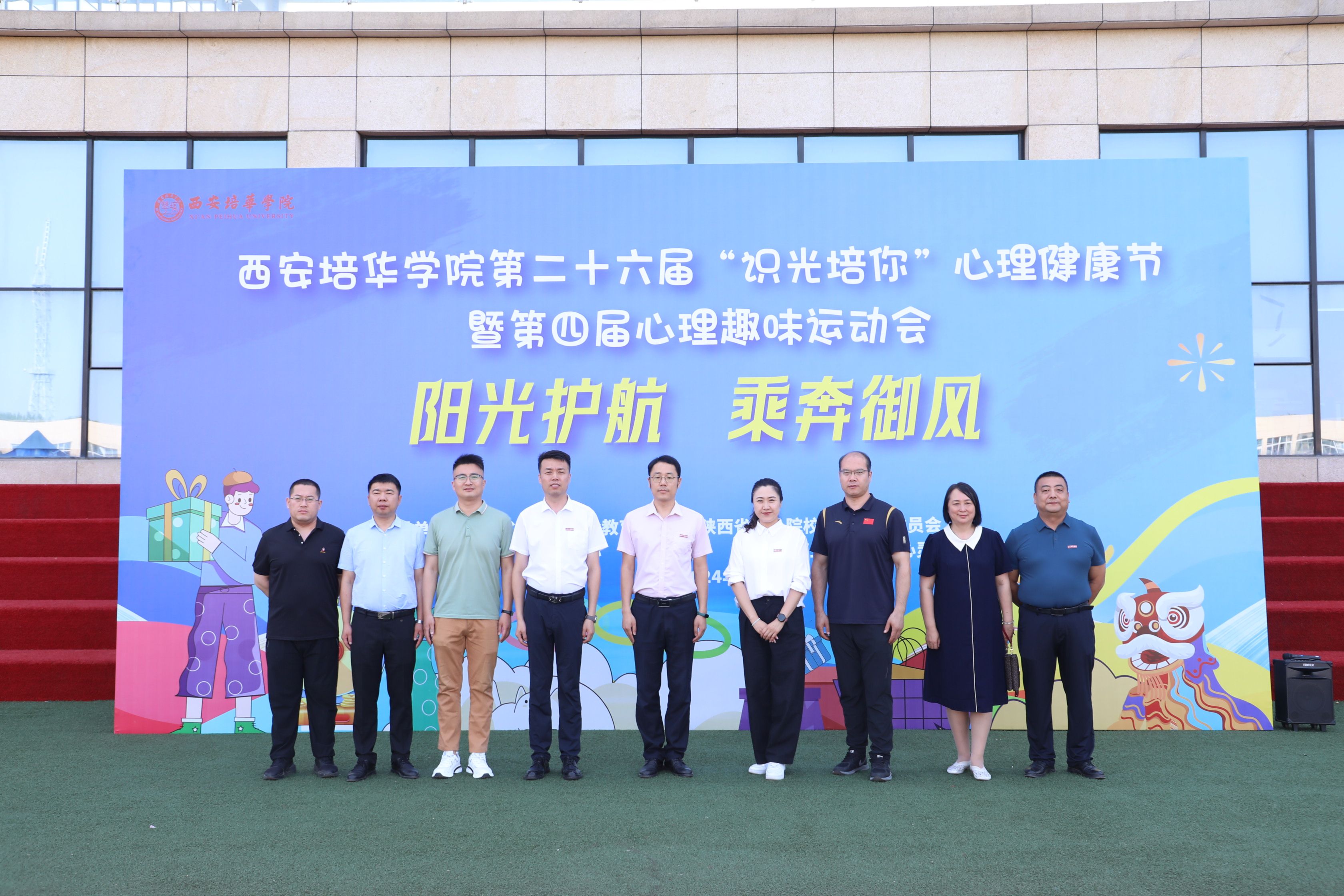 活动伊始,“阳光护航·乘奔御风”西安培华学院第二十六届“识光培你”心理健康节暨第四届心理趣味运动会心理趣味运动会开幕仪式由学生潜能发展中心主任韩赟主持,党委学生工作部部长、学生服务中心主任权勇太致开幕词、正式宣布心理趣味运动会开幕,各二级学院领导出席开幕仪式,共同为学生们加油助威。