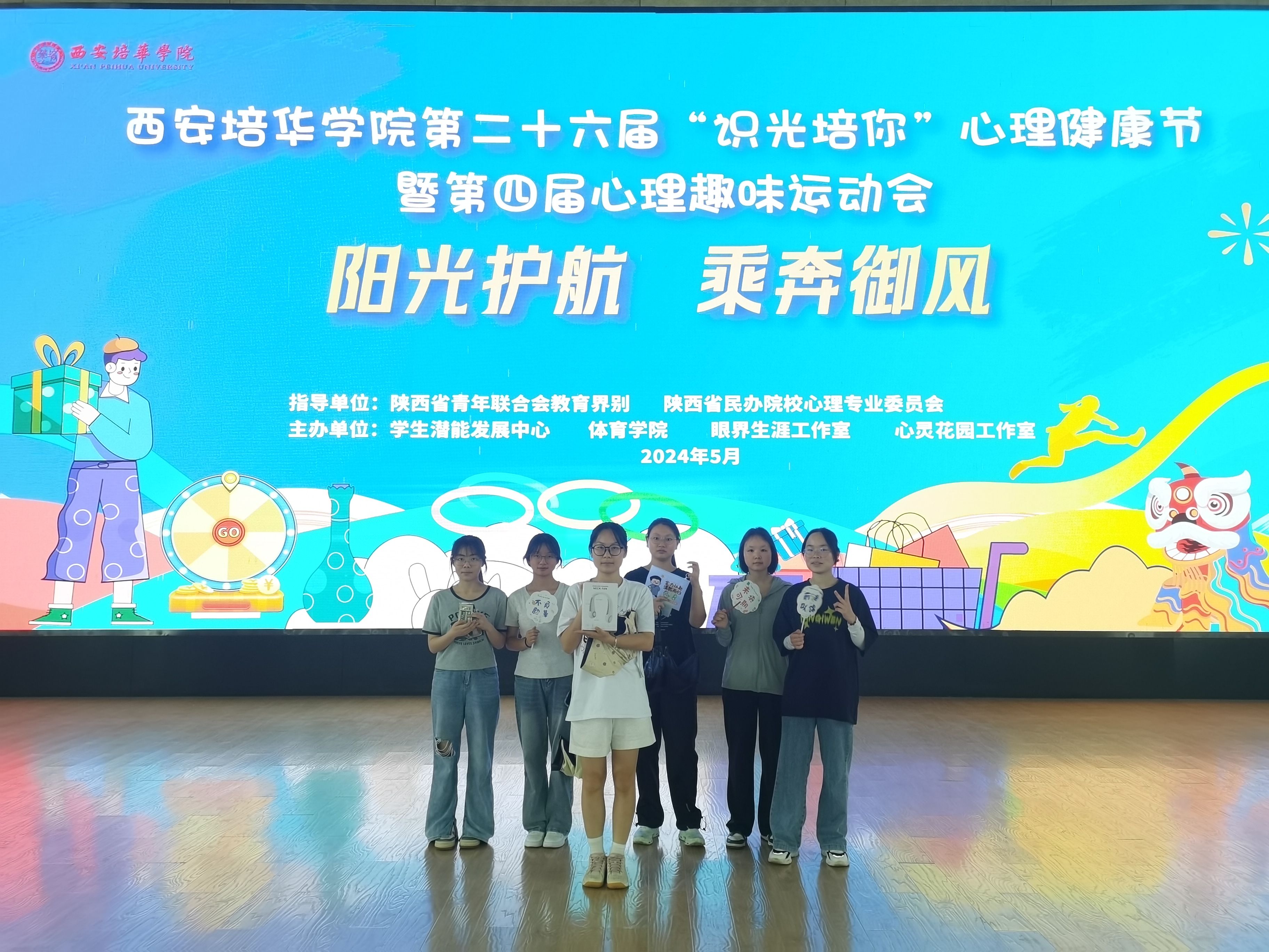 5月22日,由陕西省青年联合会教育界别、陕西省民办院校心理专业委员会指导,学生潜能发展中心、体育学院、眼界生涯工作室、心灵花园工作室联合主办,西安培华学院第二十六届“识光培你”心理健康节暨第四届心理趣味运动会亦圆满收官。本届心理趣味运动会根据心理元素,设定两个活动区,共有十二项体验活动向全体师生开展,分别为∶