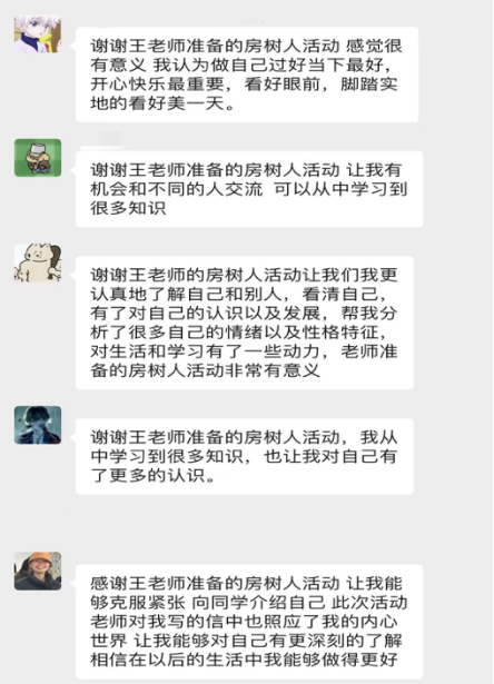 成员二∶这样的活动可以打开自己的内心世界,在聆听他人独白的过程中,可以取长补短,结合自身的情况寻求改变。