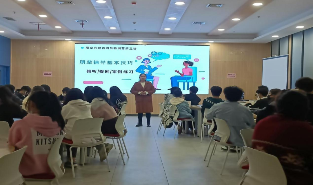 遇心涯学生互助工作委员每年参加校学生潜能发展中心组织的朋辈特训营,集中学习朋辈心理咨询基础知识,考核合格者可成为朋辈心理咨询员,参与学生潜能发展中心的朋辈咨询服务。