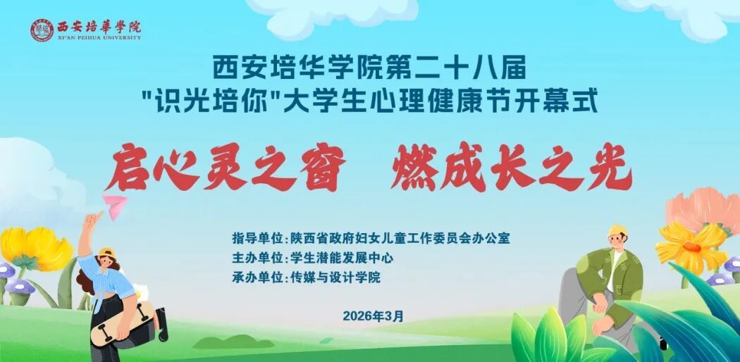在这个充满希望的季节里,西安培华学院第二十八届“识光培你”心理健康节即将盛大开幕!本届心理健康节以“启心灵之窗,燃成长之光”为主题,从3月到6月,我们将用一整个春天的温暖,陪伴每一位培华学子向阳而生、逐光而行。