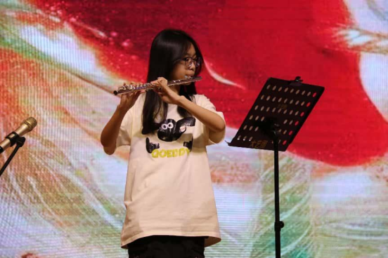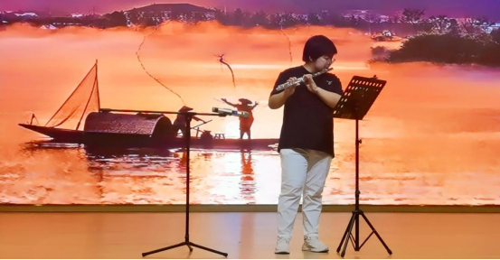 在热烈的掌声中演出帷幕正式拉开,一场精心编排的视听盛宴展现在观众面前,节目内容精彩纷呈:街舞《Run the world》以动感活力点燃现场;女声独唱《想自由》、男声二重唱《说了再见》及女声五重唱《日落大道》、女声三重唱《骁》展现了声乐教学的扎实成果;民乐小合奏《诀别书》与古筝合奏《盛世国乐》传递出传统音乐的深厚韵味;长笛独奏《渔舟唱晚》、《大鱼》以及钢琴独奏《C大调小奏鸣曲》则彰显了器乐演奏的娴熟技巧。学子们在璀璨的舞台上尽情绽放才华与热情,每一个节目都凝结着指导教师的悉心教导与艺术团成员的勤学苦练,生动体现了本学期教学管理的严谨高效与艺术实践的丰硕成果。