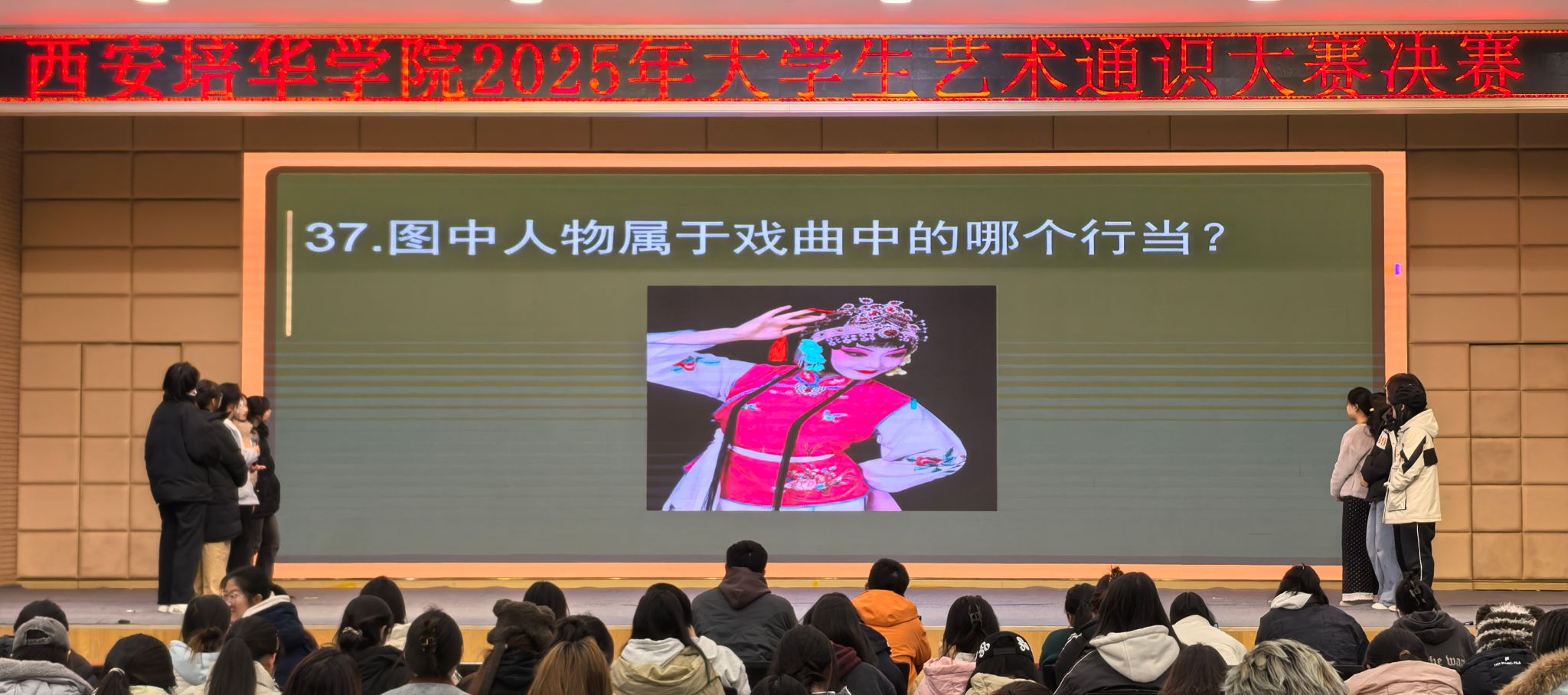 在题库研发方面,筹备团队历时数月深耕细作,累计完成初赛试题 900 题以上、决赛试题 450 题以上,构建了一套覆盖广泛、梯度合理的优质题库。试题内容不仅涵盖音乐类、舞蹈类、美术书法类、戏剧戏曲类、影视类、艺术基础理论等六大核心艺术领域,全面考察学生的艺术通识储备;更创新性融入培华校情类特色知识与学校女性教育特色内容,既彰显了校园文化的独特性,又让学生在备赛过程中加深对学校办学理念与文化底蕴的理解。试题难度从基础认知到深度应用层层递进,既保证了赛事的参与度,又确保了对学生艺术素养的精准选拔。