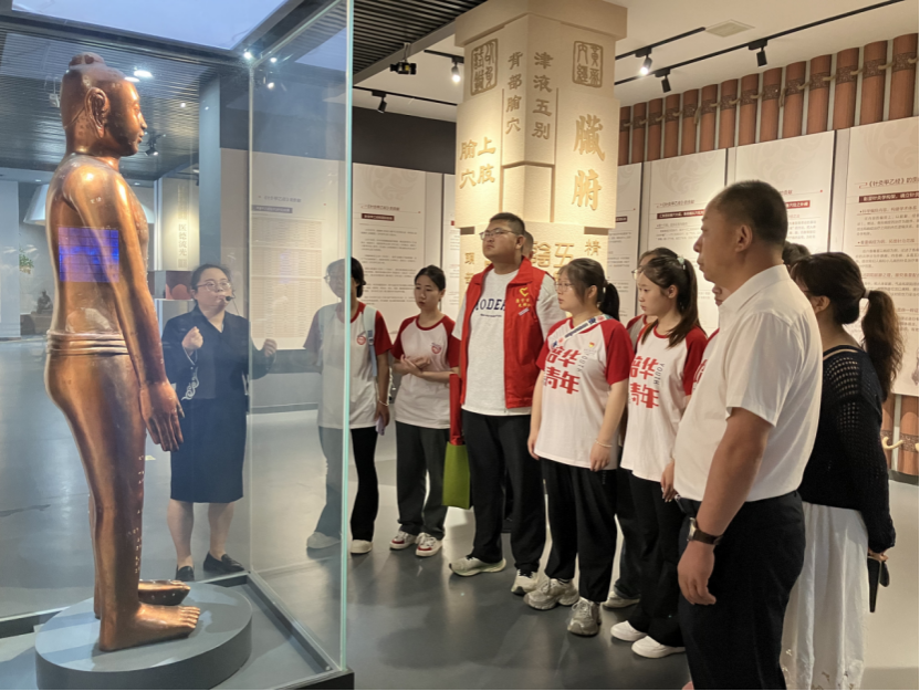 在讲解员沉静的讲述中,“弃官从医”的决绝、“躬身实践”的执着 逐渐化开历史尘封,融入现代青春热忱的血管脉搏里。队员们长久驻足塑像前。副队长史媛媛举起手机拍照留念,镜头框中古今 医者精神悄然相认,共同传递着一柄无形却沉甸甸的“银针”——那是为苍生健康而担当的道义与责任。