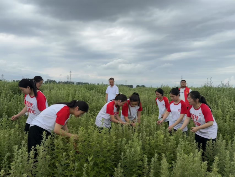 顺着皇甫谧文化园拐角处一路右转,便是千亩艾草种植基地。这个季节,千亩艾草正是生长旺盛期。基地里,叶片宽厚的艾草正舒展着身姿。队员们在基地负责人刘倩介绍下学习辨识艾草品种。“你看这叶背的白绒毛,这是咱灵台特有的‘谧艾’,精油含量比普通艾草高三成。”