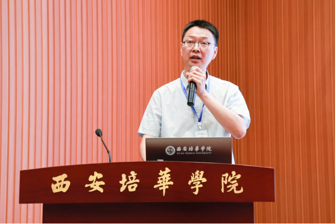 西安培华学院理事长姜波博士致辞,他首先对与会的专家、嘉宾表示热烈欢迎,同时感谢我校附属医院、教学医院、实习医院及参会单位对我校多年来医学教育教学的大力支持。他强调指出:一是医疗康养一体化不仅仅是产业发展的趋势,更是满足人民日益增长的健康需求,我们需要坚持“以人为本”的发展理念,以科技为引领,以政策为支撑,以市场需求为导向,推动医疗康养产业向更高质量、更深层次的融合与发展;二是热切的邀请各位专家、兄弟院校、医疗机构和科研院所共同支持并参与培华在健康事业和健康产业方面的建设,为康养产业的发展贡献力量;三是我校正在积极推动与兄弟院校、医疗机构的深度合作,特别是深化与附属医院的紧密合作,旨在构建一个整合培华医校资源的全方位人才培养平台,推进医学领域的产业学院建设。