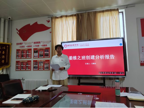 首先由各位辅导员老师通过PPT做“姜维之班”创建班级分析报告,大家详细介绍了所带班级基本情况(班级成员介绍、班团一体化运营、组织建设情况、班级创建情况)、班级创建情况(学习氛围、学业成绩对比、违纪、处分、挂科对比、班级、公寓文化建设对比、学科竞赛、资格证书考取情况对比)、特色亮点创建、未来发展规划(针对创建班级学生满意、学风优良、内涵丰富制定的发展规划)等内容。通过班级分析各位老师认真剖析问题,提出解决办法,更好的促进学院姜维之班创建工作走深走实。