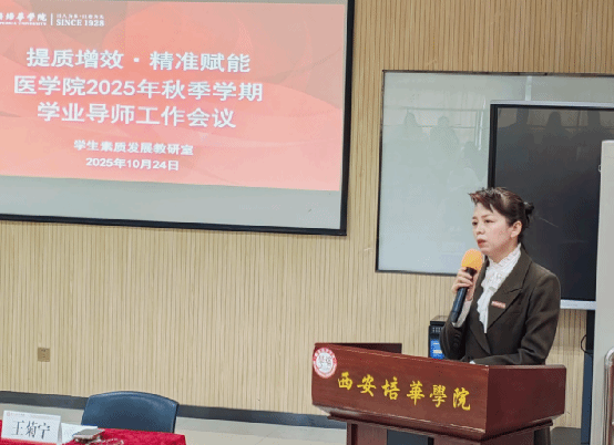 会议第二项由医学院学生素质发展教研室主任尚丛珊做学业导师工作总结并解读学业导师管理办法。尚主任系统回顾了学业导师工作的开展情况,从学业辅导、科研启蒙、生涯规划、心理健康等多个维度,展示了导师们在助力学生成长中的具体举措与成效。同时也客观分析了工作中存在的不足。在未来工作计划中,她表明教研室将以“提质增效,精准赋能”为工作目标,重点推进三方面工作:一是加强导师指导经验交流分享,推广优秀指导案例,提升导师的专业指导能力;二是强化指导成效的考核,本年度工作重点为降低挂科率、提升四六级通过率、加强学科赛事指导和成果积累,同时推进高质量就业;三是建立学生及班级成长跟踪体系,制定个性化的长效指导方案,实现从“入学”到“毕业”的全周期指导,用数据检验指导成效和延续性,为学生成长成才赋能。