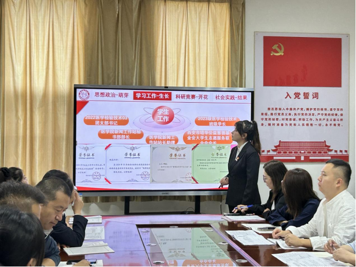 为落实好院学函〔2025〕53号《关于做好2024-2025学年国家奖学金评审工作的通知》中的文件精神,顺利推进学院国家奖学金的评选工作,充分发挥国家奖学金青春榜样学生的激励作用,医学院于2025年9月18日上午,在至善楼8330会议室顺利举行“2024—2025学年国家奖学金评审答辩会”。本次答辩会由冯贝老师主持,共有16名学生参加答辩,其中15名学生参加现场评选答辩、1名实习生线上答辩。我院党委副书记何丽以及全体辅导员出席并担任答辩会评委,学生代表20余人参加观看。