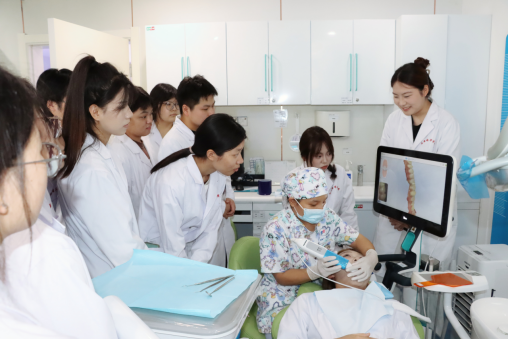 在修复科诊室,老师演示修复口扫、设计及医技沟通协作流程,让“义齿制作” 不再是课本上的抽象概念;正畸科诊室里,老师们通过解析正畸口扫与矫治器设计,揭开正畸诊疗的神秘面纱;消毒供应室中,现场展示感染控制流程,强调医疗安全底线;这些实践教学,让专业知识“活” 了起来。