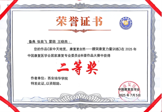 西安培华学院在此次全国大赛中的亮眼表现,不仅为学院赢得了荣誉,也为西北地区康复医学教育树立了标杆。据悉,获奖作品将在中国康复医学会官方平台进行展播推广,惠及更广泛的人群,照亮万千家庭的居家康复之路。