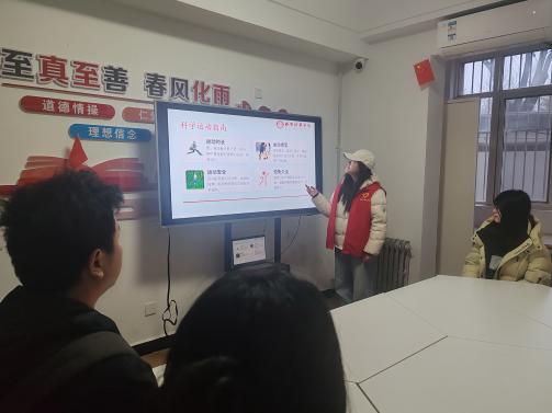 2026年3月16日,西安培华学院医学院青年志愿者协会在15号公寓开展“医学知识·健康生活方式”主题宣讲活动,策划部部长李语娜同学担任主讲,面向志愿者们普及健康知识、传递科学理念。宣讲中,李语娜主要围绕科学运动、日常健康管理等内容,结合青少年生活实际,从运动时长、运动类型、运动安全等方面进行细致讲解,用生动案例引导同学们合理作息、适度运动、重视身心健康。此次活动有效提升了同学们的健康意识与自我保健能力,既展现了医学院学子学以致用、服务同学的良好风貌,也进一步营造了健康向上、互助友爱的校园氛围。