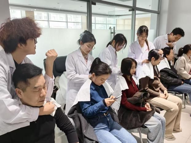 3月24日,医学院青年志愿者协会的志愿者们在汇知楼二楼第四会议室开展义诊活动。志愿者们为老师们提供按摩、量血压、刮痧等多项健康服务,细致操作、耐心答疑,普及日常保健与养生知识。大家用专业技能传递温暖关怀,切实为老师们的健康保驾护航,充分展现医学生学以致用、服务奉献的青春风采与责任担当。
