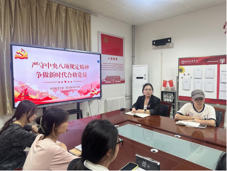 活动最后,冯贝书记对本次学习进行总结。她指出,此次专题党课学习活动,不仅是对中央八项规定精神的一次再学习、再教育,更是对党员纪律意识的一次强化。通过此次学习,全体党员要进一步提高政治站位,增强“四个意识”、坚定“四个自信”、做到“两个维护”,始终保持对党纪国法的敬畏之心,自觉抵制各种不良风气,以实际行动践行党的宗旨。同时,她也鼓励党员们在今后的学习和工作中,积极传播正能量,影响和带动身边的同学共同进步。