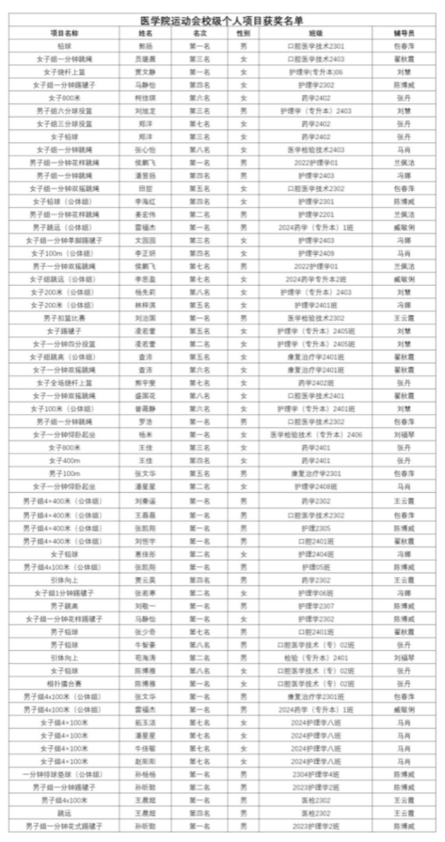 校级个人获奖名单