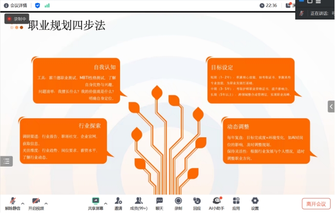 在当今竞争激烈的就业市场中,一份出色的简历如一块敲门砖。为了帮助同学们打开理想职业的大门,医学院特邀可苗老师于3月13日19:30通过线上会议为2025届毕业生进行就业指导讲座,本次活动由医学院学生干事唐璠老师主持,2025届学生代表参会。