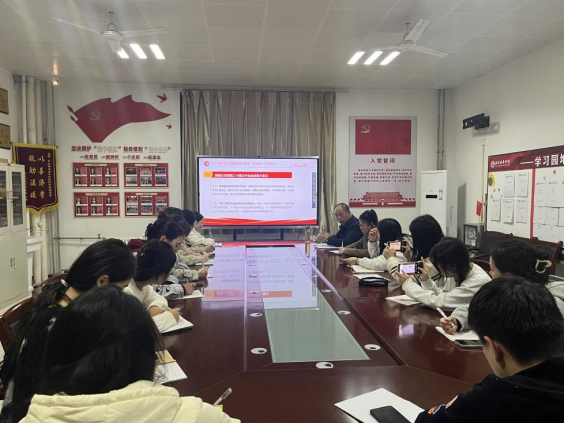随后,史立军书记结合医学院的实际情况,通过生动的案例和详实的数据,深入剖析了党的二十届三中全会精神对医学领域的影响,分析了当前医学领域面临的新挑战和新机遇。他指出,作为新时代的医学生要紧跟时代步伐,具备创新精神和实践能力,不断提升自身综合素质,以适应新时代的发展需求。作为一名即将入党的发展对象,要勇于担当深刻领会全会精神,将其贯彻落实到实际学习和工作中去并鼓励大家积极投身医学事业,为实现健康中国战略贡献自己的力量。