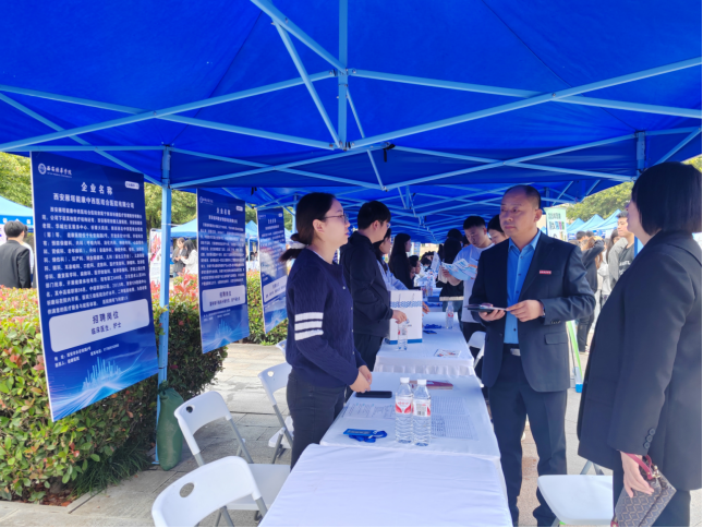 我院党委书记兼行政副院长史立军、党委副书记何丽、2025届毕业班全体辅导员老师到招聘会现场调研了解企业招聘需求以及学生求职困惑。