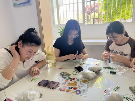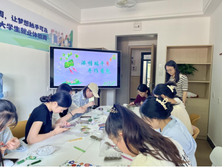 穿针引线,寄思端午。制作香囊是端午节的一项传统习俗,社区为学生们准备了各种样式的流苏、挂饰配件等制作材料,由唐璠老师为大家详细地讲解制作流程和技巧。大家一边认真学习缝制方法,一边不停地穿针引线,欢声笑语中一件件精致的香囊在学生们手里诞生。