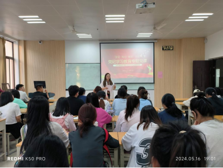 为深入学习贯彻习近平总书记关于党纪学习教育的重要讲话和重要指示精神,推动党纪学习教育走深走实,进一步强化党员的纪律意识,做到学纪、知纪、明纪、守纪。医学院学生第二党支部于5月16日在8508召开支部大会进行专题学习,支部书记冯贝以《学纪、知纪、明纪、守纪》为题,讲授党纪学习教育专题党课。