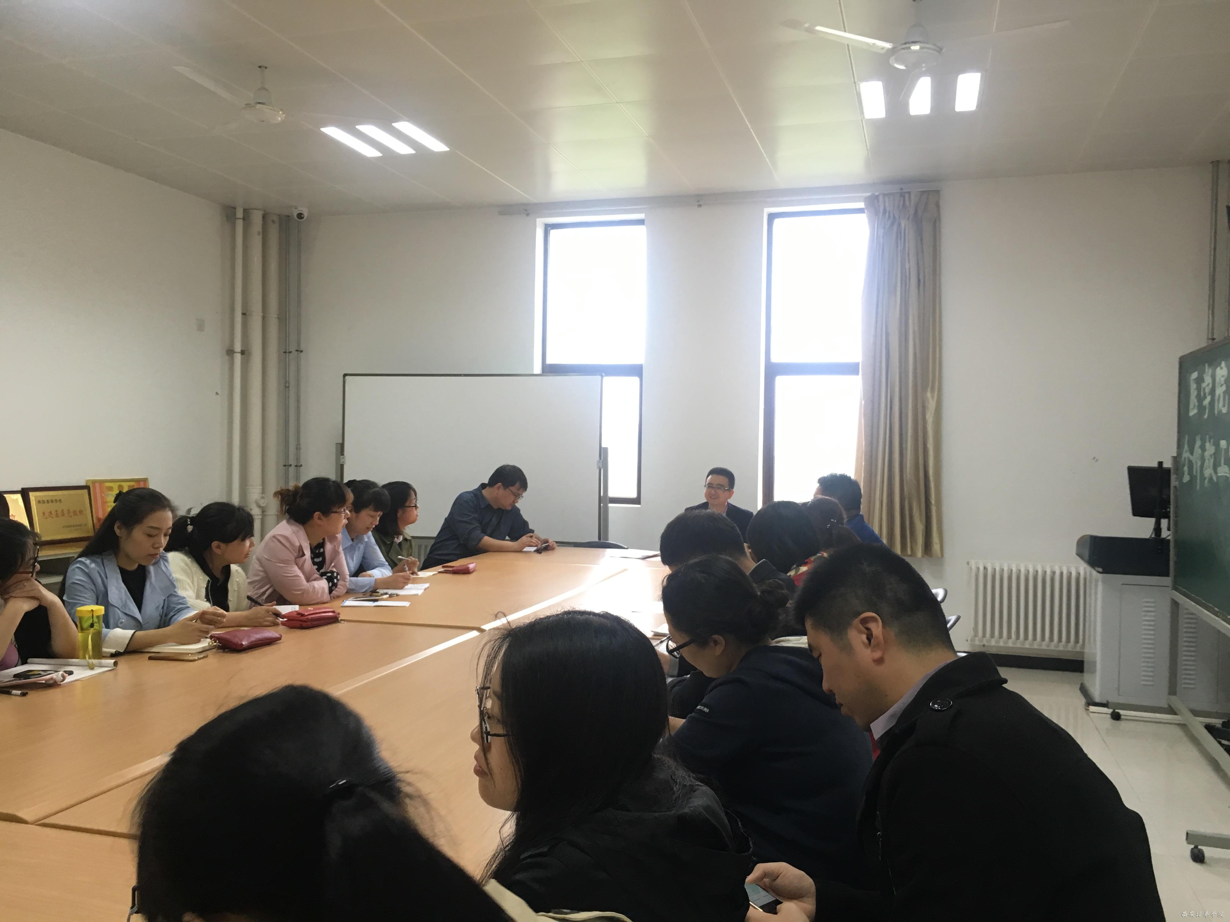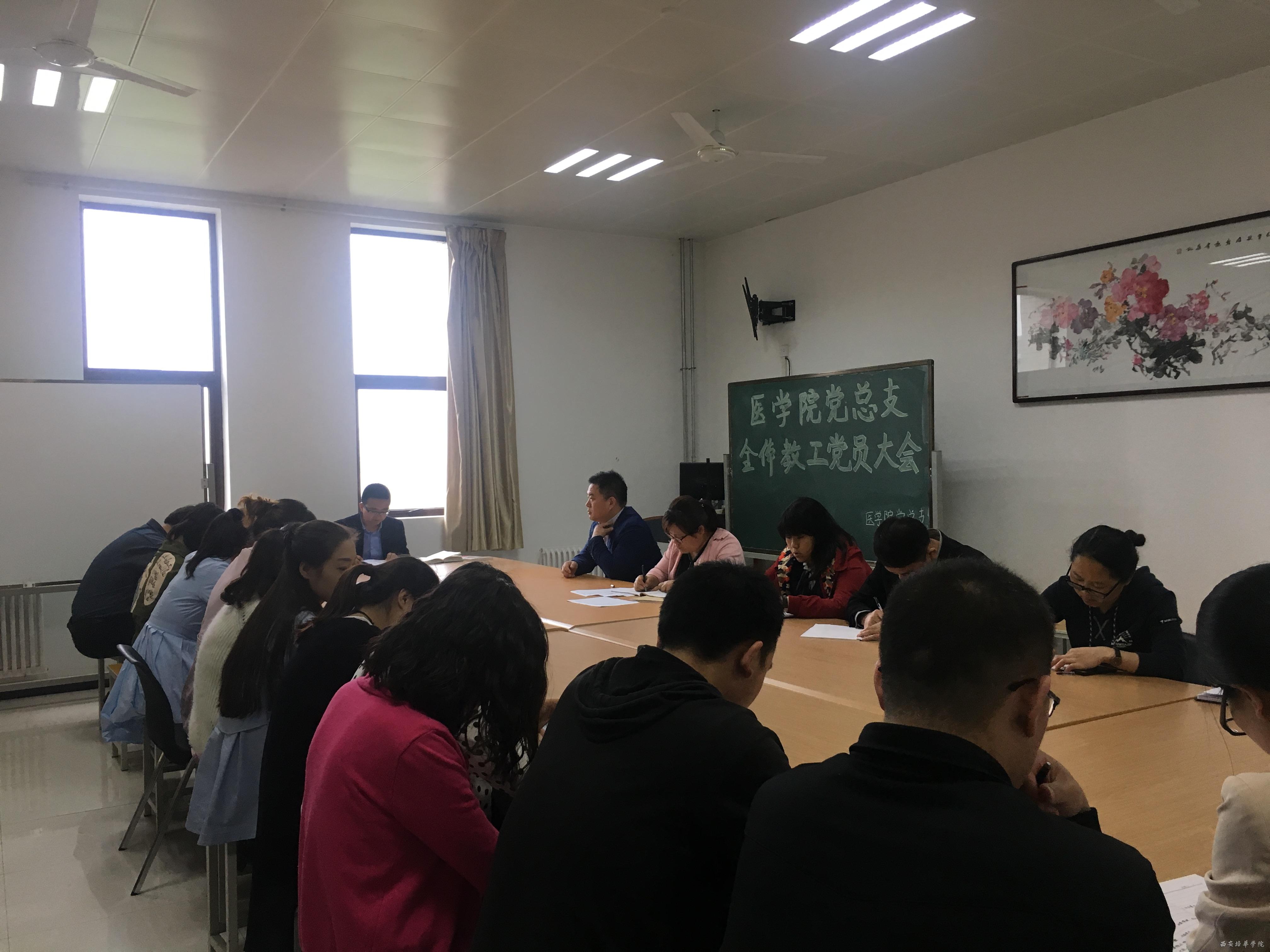 2017年5月3日下午,西安培华学院医学院党总支在8330会议室召开全院教职工党员代表大会。参加此次大会的有,党总支书记、行政副院长姚斌,院长助理刘毅,党总支委员马怀芬以及其他教工党员。