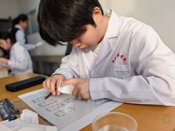 随着比赛指令的下达,现场即刻转入紧张而专注的竞技状态。在持续两小时的赛程中,选手们手持雕刻刀在石膏块上精心塑形,力求完美呈现天然牙的形态。绘图赛区的参赛作品在准确表达牙体解剖特征的同时,展现了丰富的媒介形式、色彩构成与创意构想,体现了科学性与艺术性的有机结合。