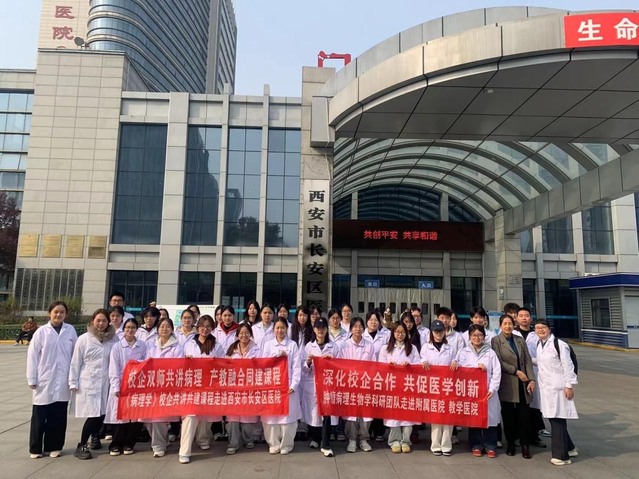 为深化产教融合,强化学生实践能力,近日,医学院基础医学系病理学教研团队组织2024级护理学专业英才班本科生,前往西安市长安区医院病理科开展课内实践活动。《病理学》为我校与西安市长安区医院病理科校企共享共建课程,此次活动是学校“校企合作”人才培养项目的重要环节,旨在促进理论教学与临床一线的深度融合。