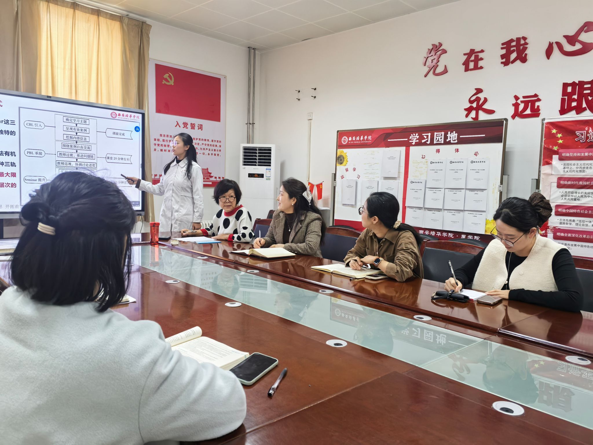 为深化课程思政内涵,扎实推进人文护理课程思政高质量建设,医学院护理系人文护理教研室于10月29日在8330会议室成功举办“融思政,育仁心”人文护理课程思政内涵建设研讨会。会议由人文护理教研室主任张瑜副教授主持,吕蒙蒙老师担任主讲,护理学专业学科带头人刘芳娥教授、心理健康研究院院长刘彦君教授、护理系副主任段思柳及教研室全体专任教师参加了此次会议。