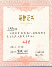 本科组陕西省首届“国希望云解剖”知识竞赛获奖证书