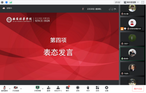 最后,于国亮副校长对会议做总结讲话,提到要做好学业导师工作必须从“四提升和四个结合”出发:学业导师要抓好“课堂、学习、创新和能力提升”四个环节,落实好“课程与课堂、课内与课外、理论课与实践课、职业认同与职业吸引力”四个结合。要做好课堂知识的融合,使碎片化的知识变成链条;课内课外相结合提高学生培养质量;创新教学设计;各专业老师应深入挖掘本专业优势,帮助学生提高专业认同度,从而扎实推进学业导师相关工作。