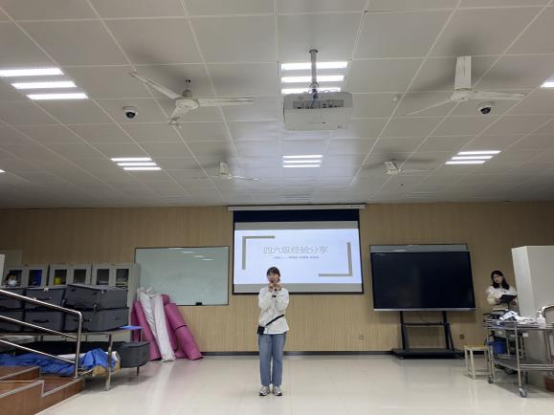 2019级李思敏同学介绍了四级英语考试的题型和分数占比等考试信息,并向同学们分享了在备考时间不足的情况下该如何提分的经验方法。与此同时,她还提出了“三省”激励大家:今天背单词了吗?今天做套题了吗?今天离考试还剩几天呢?吾日三省吾身,希望这样的自省能够帮助同学们提高自律性,在临近考试的日子里认真复习四级考试。