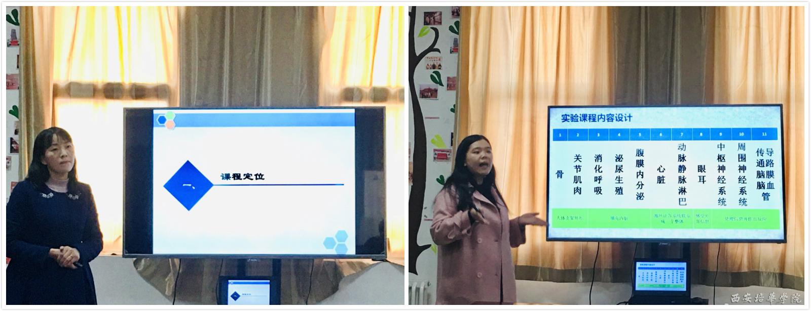 此次比赛的评委老师分别是西安培华学院副校长、医学院院长于国亮教授,教务管理中心副主任张伟副教授,医学院常务副院长王平安教授,医学院院长助理王菊宁副教授以及“第八期应用型课程建设大课堂”一等奖获得者葛维娟老师,他们在应用型特色课程改革方面都有着丰富的经验。