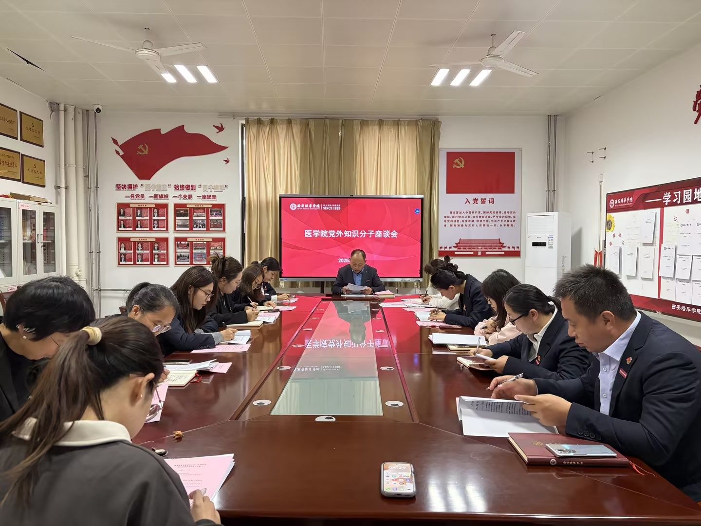 会议伊始,由党委书记兼行政副院长史立军领学《中共陕西省委教育工委关于全省教育系统认真学习贯彻习近平总书记重要讲话和全国教育大会精神的通知》和学习贯彻党的二十大三中全会精神的通知。他强调,党外知识分子工作是统一战线的基础性、战略性工作,希望大家强化理论学习,筑牢共同思想政治基础,做到与党同向、与党同向、与党同行,共同凝聚起推动学院高质量发展的磅礴力量。