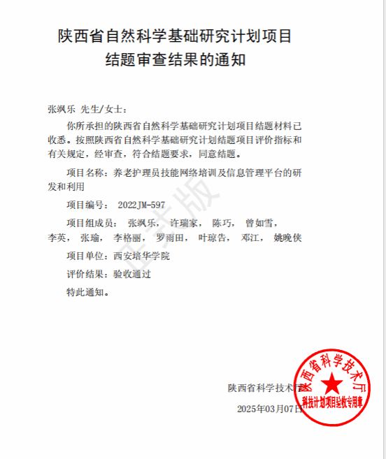 以党建引领学科发展,主持陕西省科技厅项目1项,主持陕西省教育厅项目2项、西安市社科项目1项;参与陕西省社科项目等8项,主持完成校级科研教改项目7项。发表论文20余篇(其中SCI 1篇,CSCD 1篇,中文核心2篇,科技核心多篇),获批实用新型专利3项;编著教材2部。指导大学生创新创业项目多项,指导学生发表论文数篇。