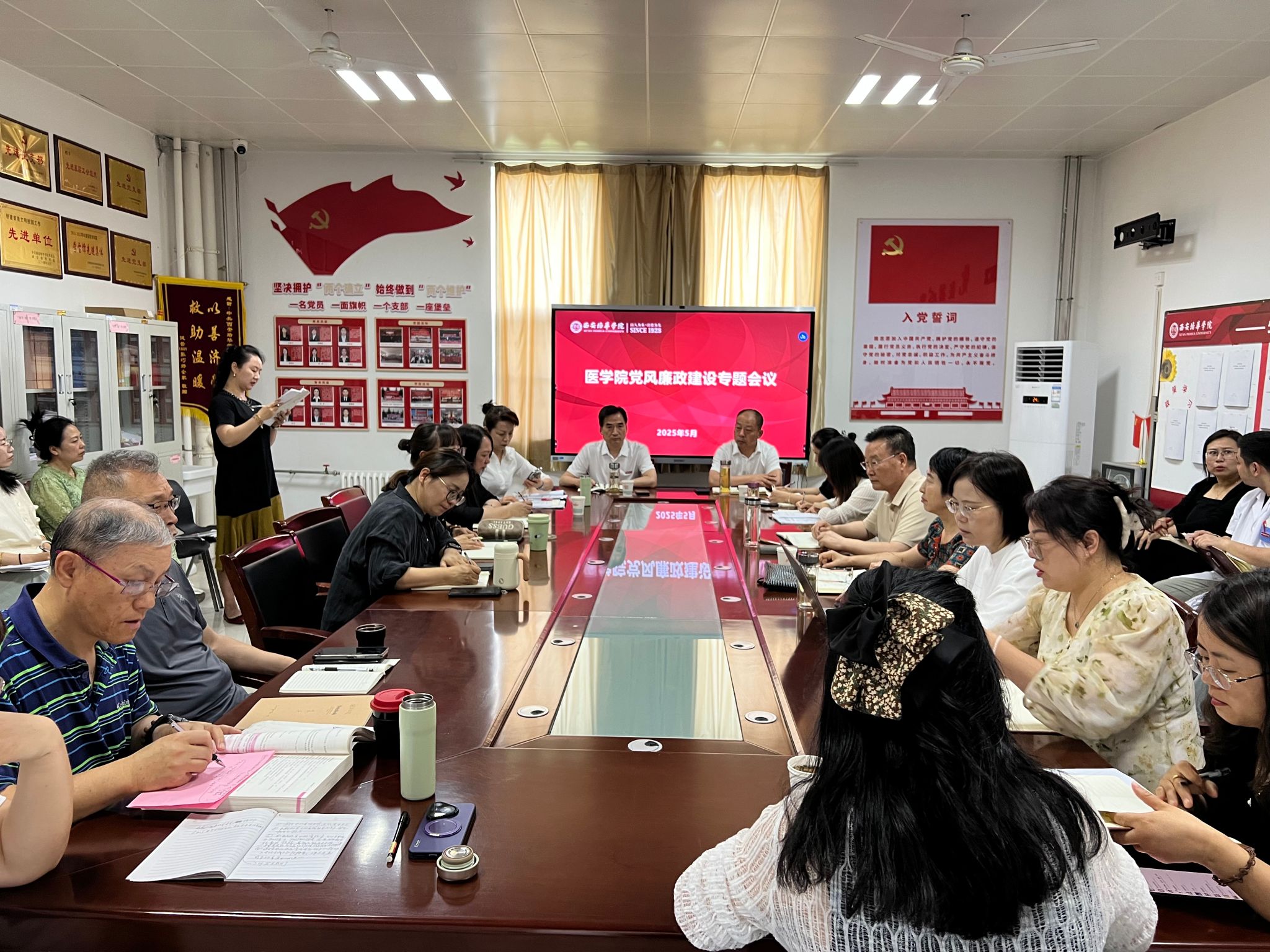 为深入贯彻中央八项规定精神学习教育,加强党风廉政教建设,统一思想、提高认识,强化我院党员干部廉洁自律意识,2025年5月30日上午,医学院党委在至善楼8330党员活动室组织召开党风廉政及警示教育专题工作会议。医学院领导班子成员、学院党委委员和各系教师代表参加会议,会议由党委书记兼行政副院长史立军同志主持。