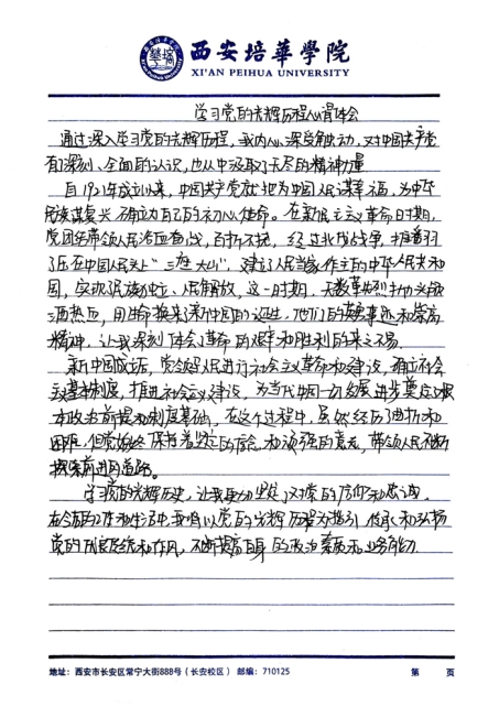 姚依杏表示:观看《伟大建党精神》党课后,我深刻感受到“坚持真理、坚守理想,践行初心、担当使命,不怕牺牲、英勇斗争,对党忠诚、不负人民”这32个字字字千钧。从革命先辈们为民族独立抛头颅、洒热血,到建设者们为国家富强拼搏奉献 ,伟大建党精神贯穿始终。它是力量源泉,激励共产党人不断奋进。作为一名党员,我会将其融入日常,立足岗位,服务群众,为实现中国梦贡献力量,让伟大建党精神绽放新光芒。
